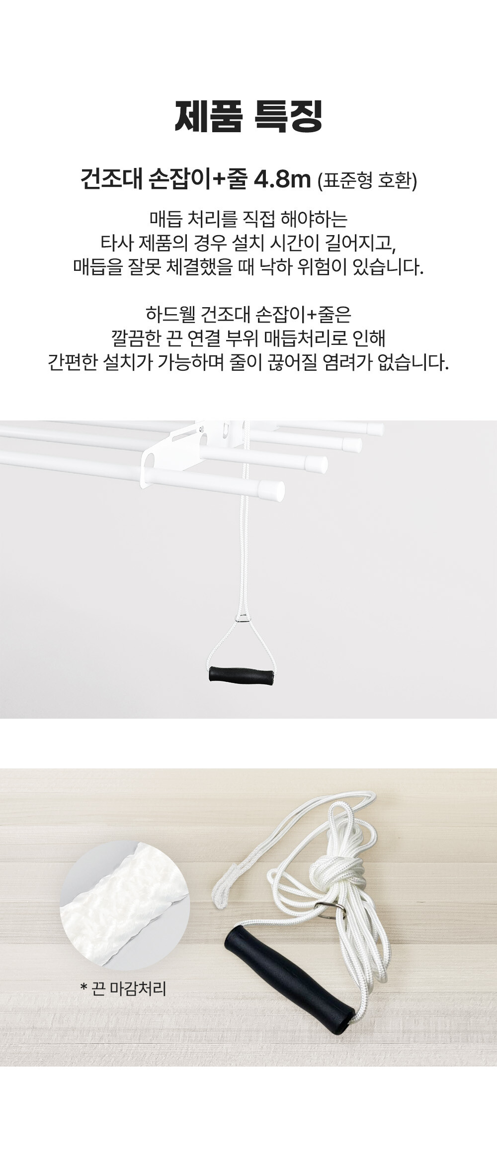 하드웰 베란다 천장 빨래건조대 교체용_손잡이+줄 4.8M