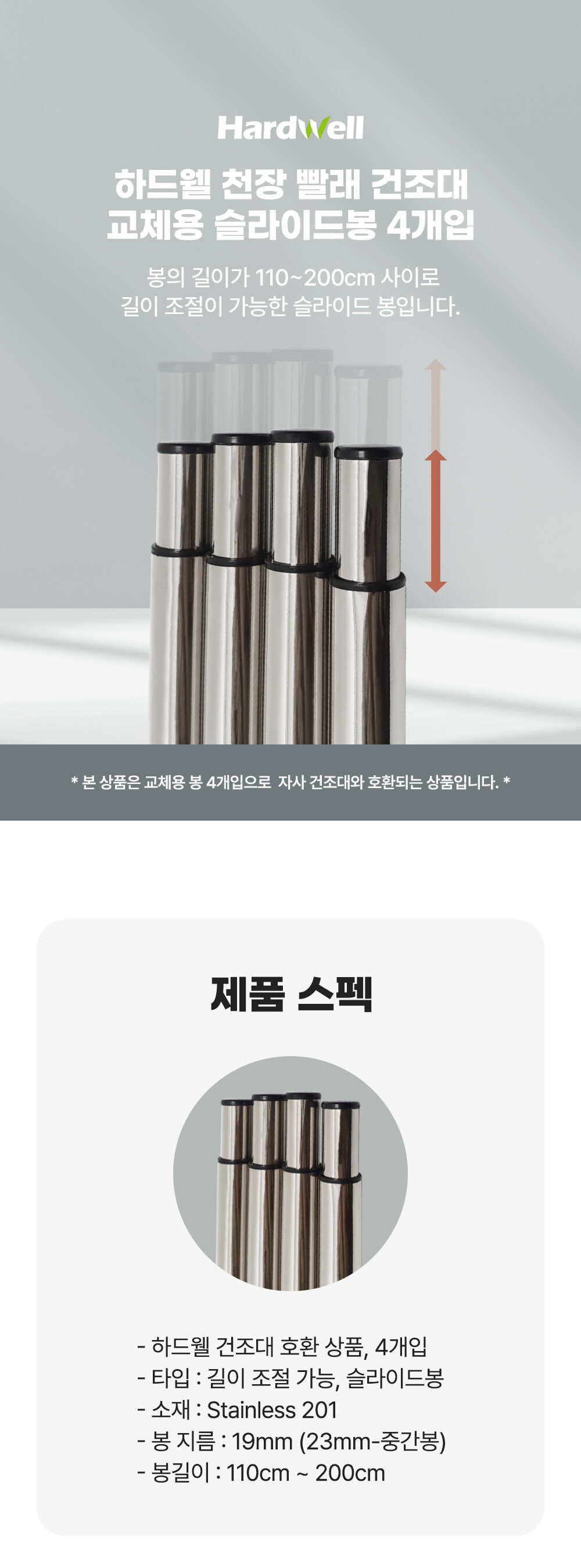 하드웰 베란다 천장 빨래건조대 교체용_슬라이드봉(110~200cm)