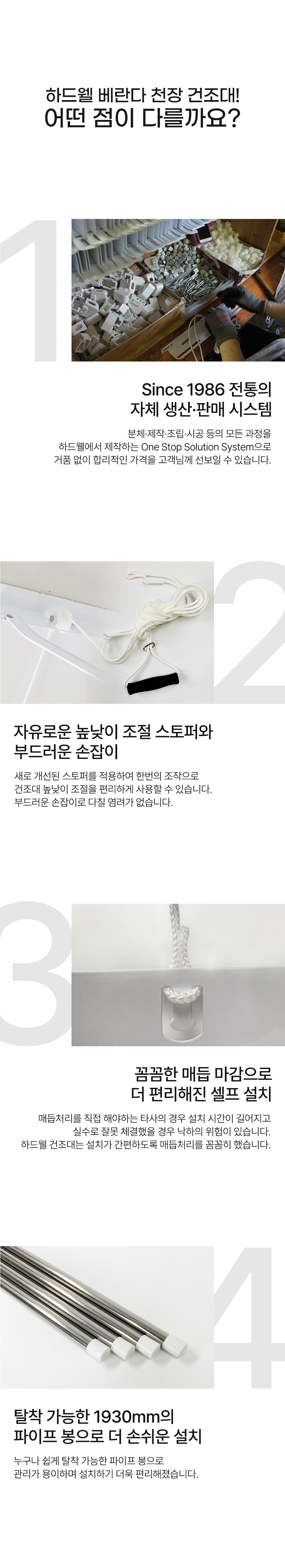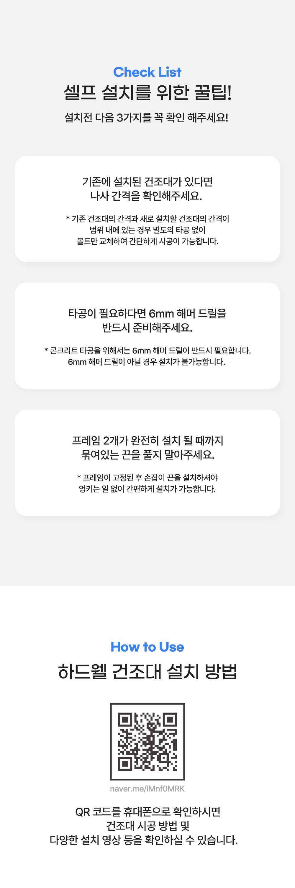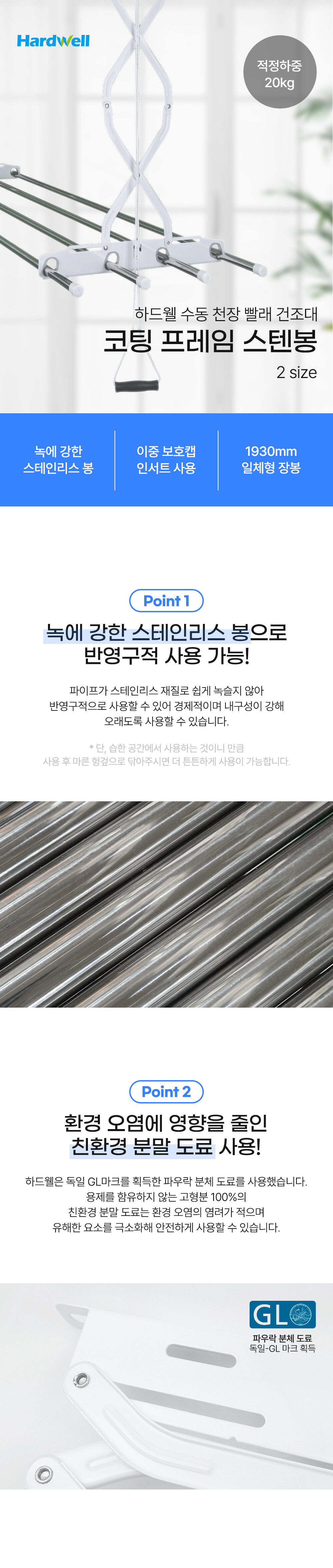 친환경 분체도장 프레임에 스테인리스 파이프 구성으로 층고가 낮거나 원룸, 오피스텔, 발코니가 협소한 아파트에 OK!
