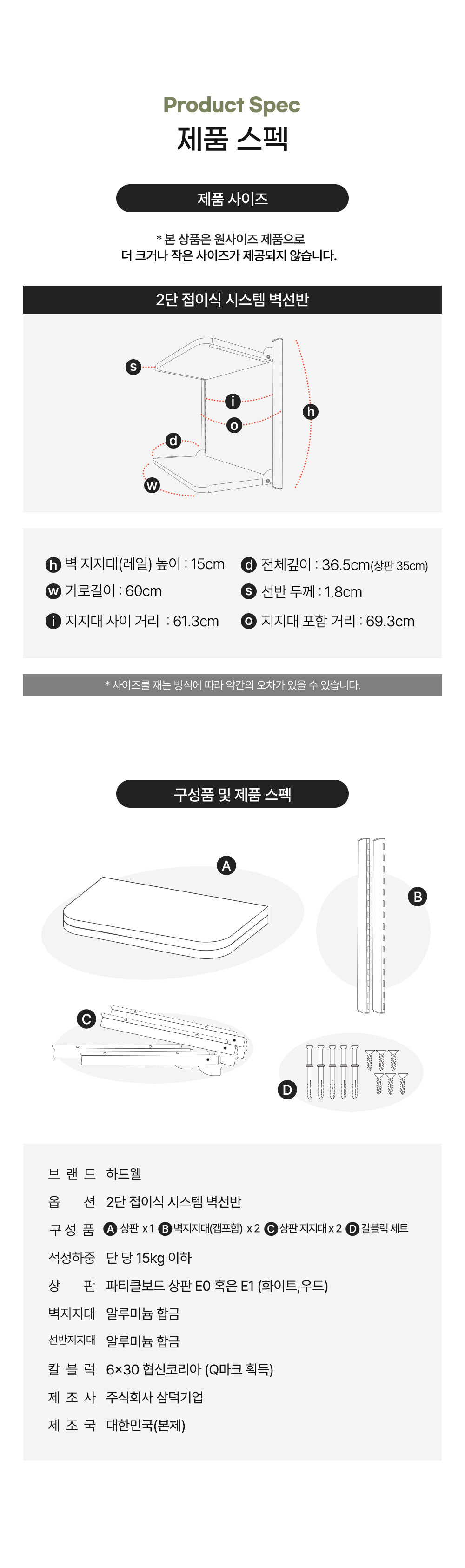 하드웰 폴딩 시스템 벽선반 2단 접이식 베란다 세탁실