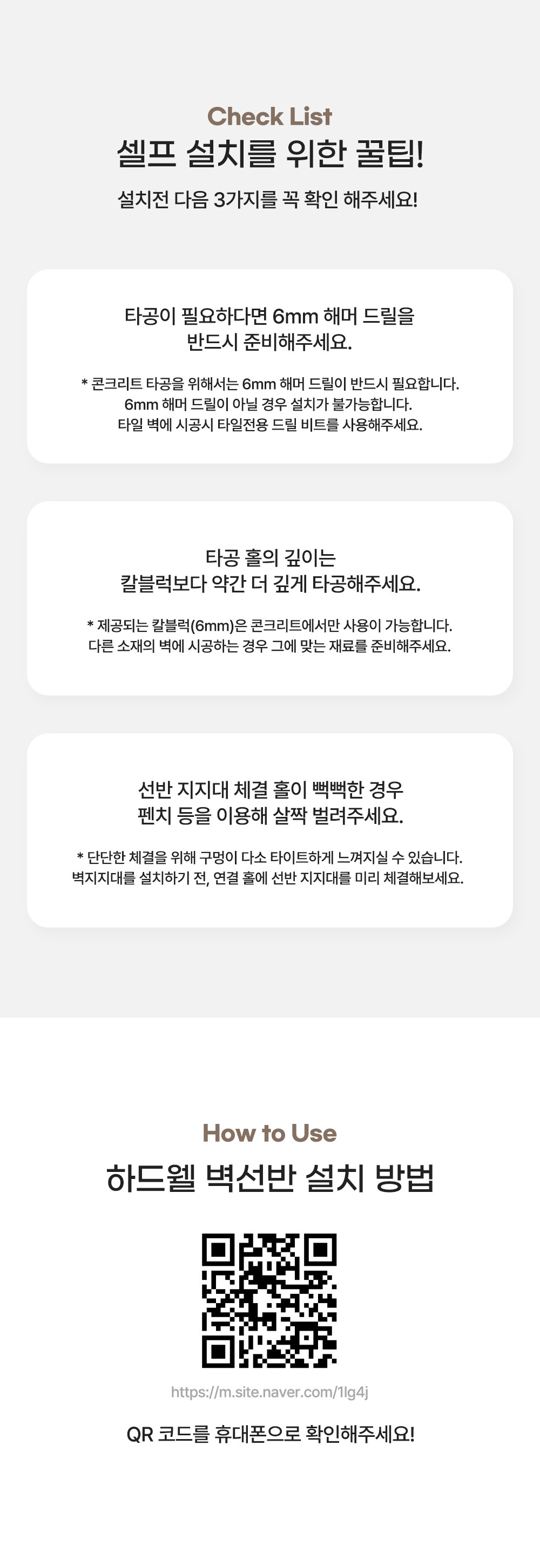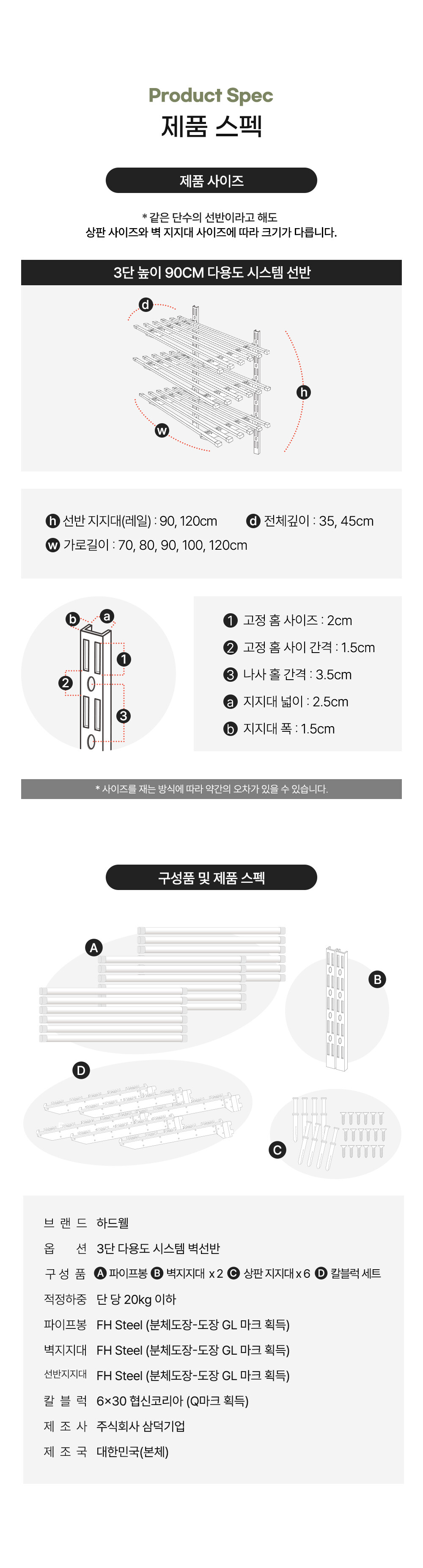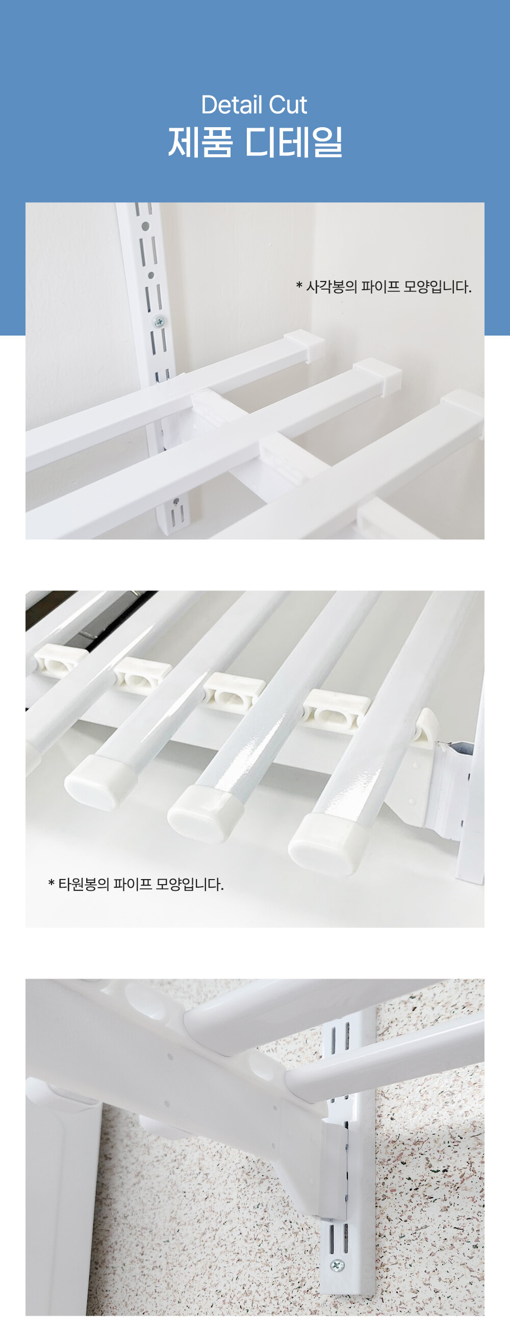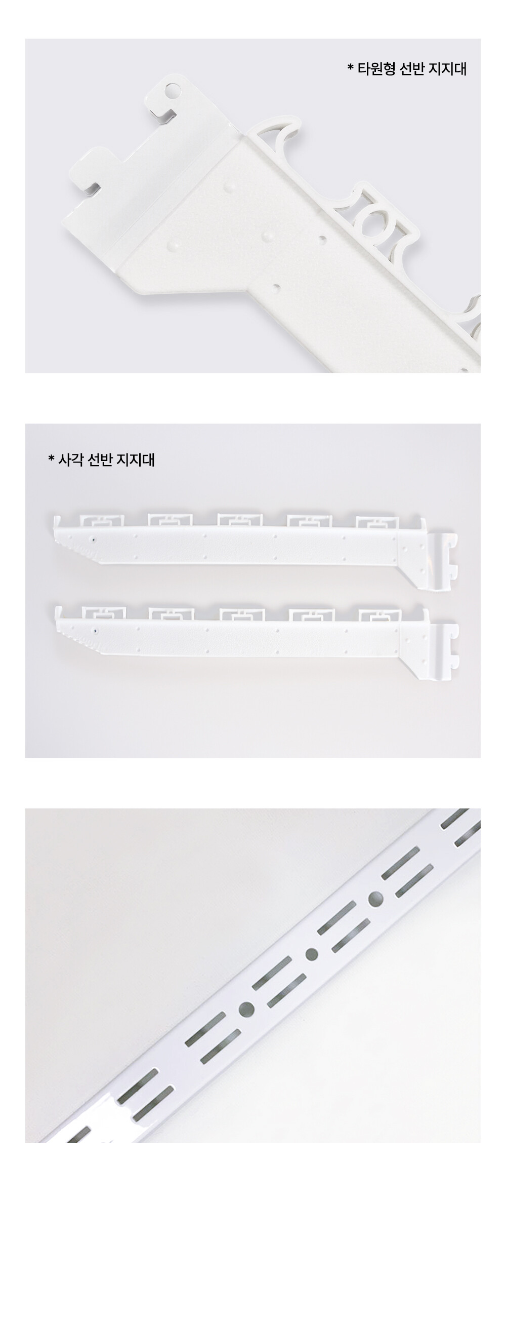 일반적인 선반들은 선반 거치대가 고정이 되면 이동이 불편한 반면, 다용도 선반은 브라켓 홈에 거는 방식으로 탈부착이 쉬우며 물건의 크기에 따라 자유롭게 조절이 가능합니다.